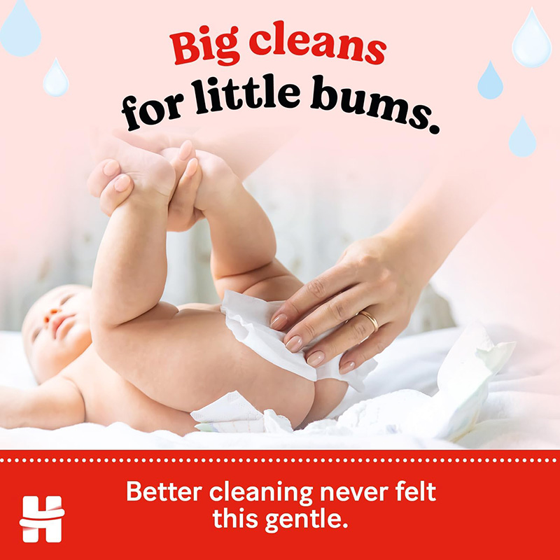 • Huggies wipes help protect against causes of skin irritation and help rebalance skin pH to support the natural skin barrier during nappy changes.