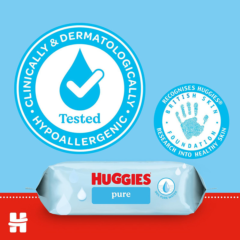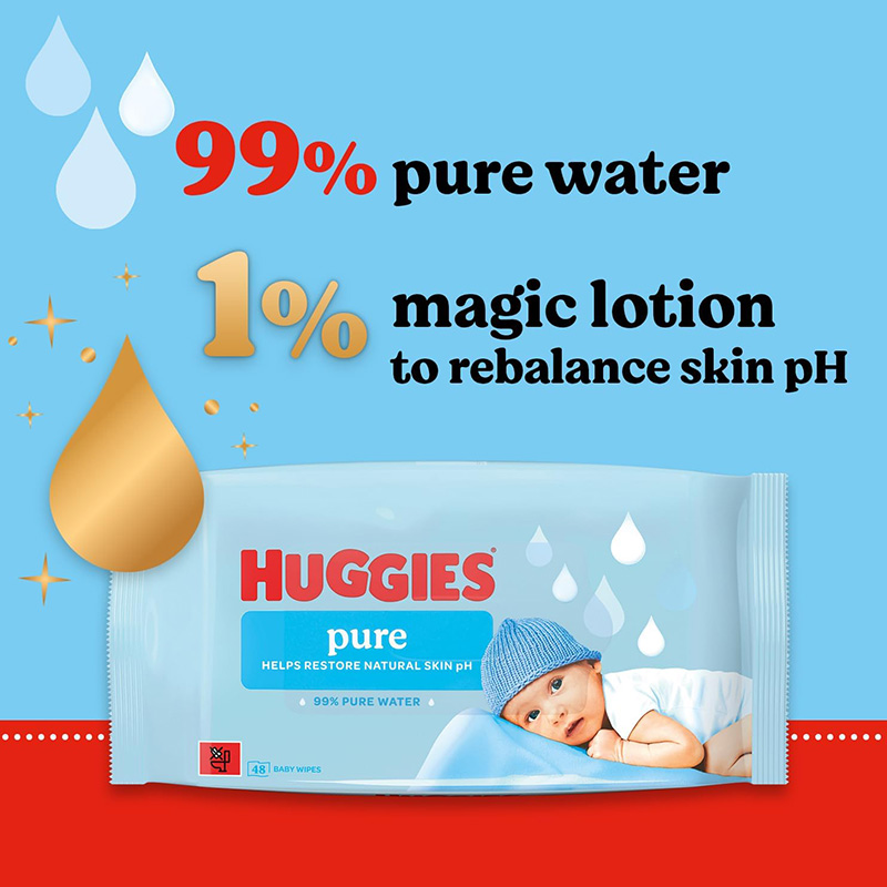 • Huggies Pure baby wipes are soft and gentle, made from 100% naturally derived fibres and are designed to provide better cleaning to care for sensitive skin.
