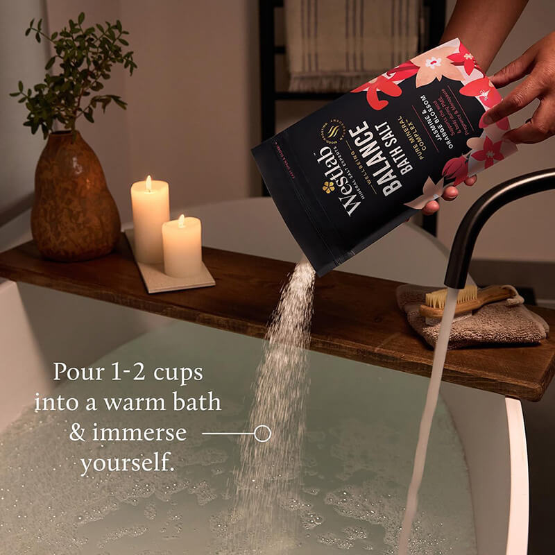 • Dim the lights, add 1-2 cups to warm running water, dissolve fully, and soak for at least 20 minutes. Dissolve your day away and emerge feeling yourself again.
